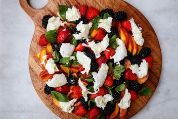 Greek salad with marinated roasted grapes, the usual suspects and fried feta